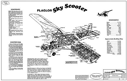 Thank you for your interest in the Flaglor "Sky" Scooter. We are very happy to be able to own and support this beautiful Ken Flaglor designed aircraft and to have this design available to the homebuilt aircraft community once again. We are very pleased that we were able to add this great design to our stable of aircraft. It is exciting and such an honor for us to carry on Ken Flaglor's legacy and to support the builders and owners of this wonderful and affordable homebuilt experimental aircraft. We look forward with great anticipation to keeping this aircraft plans set available and supported for the aircraft homebuilders to come.
