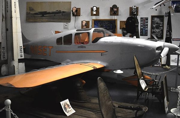 The Turner T-40A is a two-place all wood airplane with designed with folding wings so that the pilot/owner could hanger the airplane in their garage. The airplane displayed below is located at the Boron Aerospace Museum in California City, California. This aircraft is a model T-40A that was equipped with a double slotted flap wing making this airplane a Model T-40B. With a 150-horsepower Lycoming engine it has a top speed of 175 miles per hour (152 knots) at 1650 pounds. Normal cruise speed of 155 mph giving it a no wind range of 505 statute miles. Gene's son, Jerry "Jet" Turner told this author that the plane you see is the original T-40 that was cut down the middle to create the T-40A. What a wonderful piece of history the Boron Museum has in their collection.